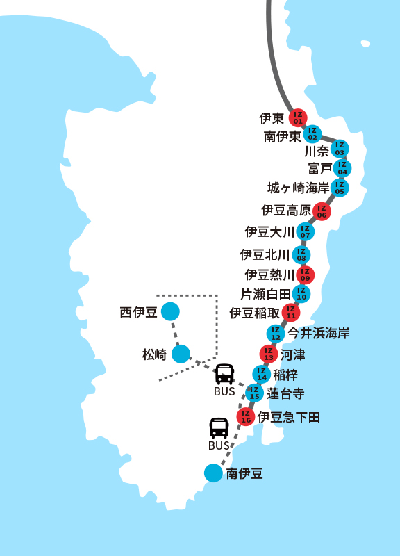 | 站名 | 伊藤南 | 川奈 | 伊豆高原 | 伊豆热川 | 伊豆稻取 | 河津 | 伊豆急下田 |