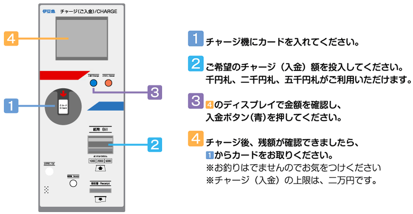 *收费金额以1,000日元为单位,最多20,000日元。不能使用 10,000 日元纸币。