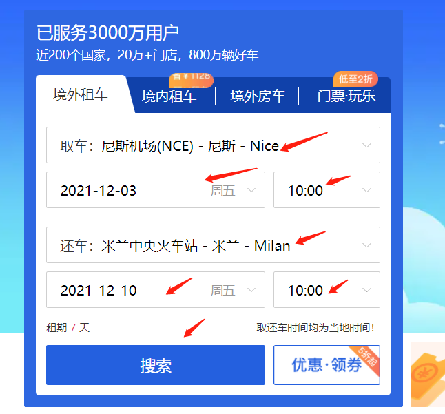 在租租车官网,只要是根据你的取还车地点搜索出来的套餐,一般都是包含异地还车费的。具体请在套餐详情页查可【套餐包含】模块: