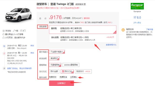 附加服务:增加额外驾驶员、GPS导航、儿童座椅等都需要额外收费。
