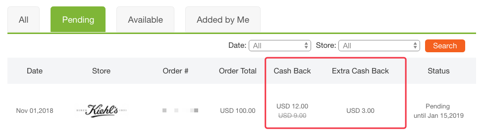 If you pay $100 at Kiehl's and the cash back rate is 9%, which means you will get $9 cash back. And now you use our Cashback Boost Card. The cash back rate is boosted to 12%. That is $12 cash back now. Just a simple click but it will earn you extra $3 cash back.